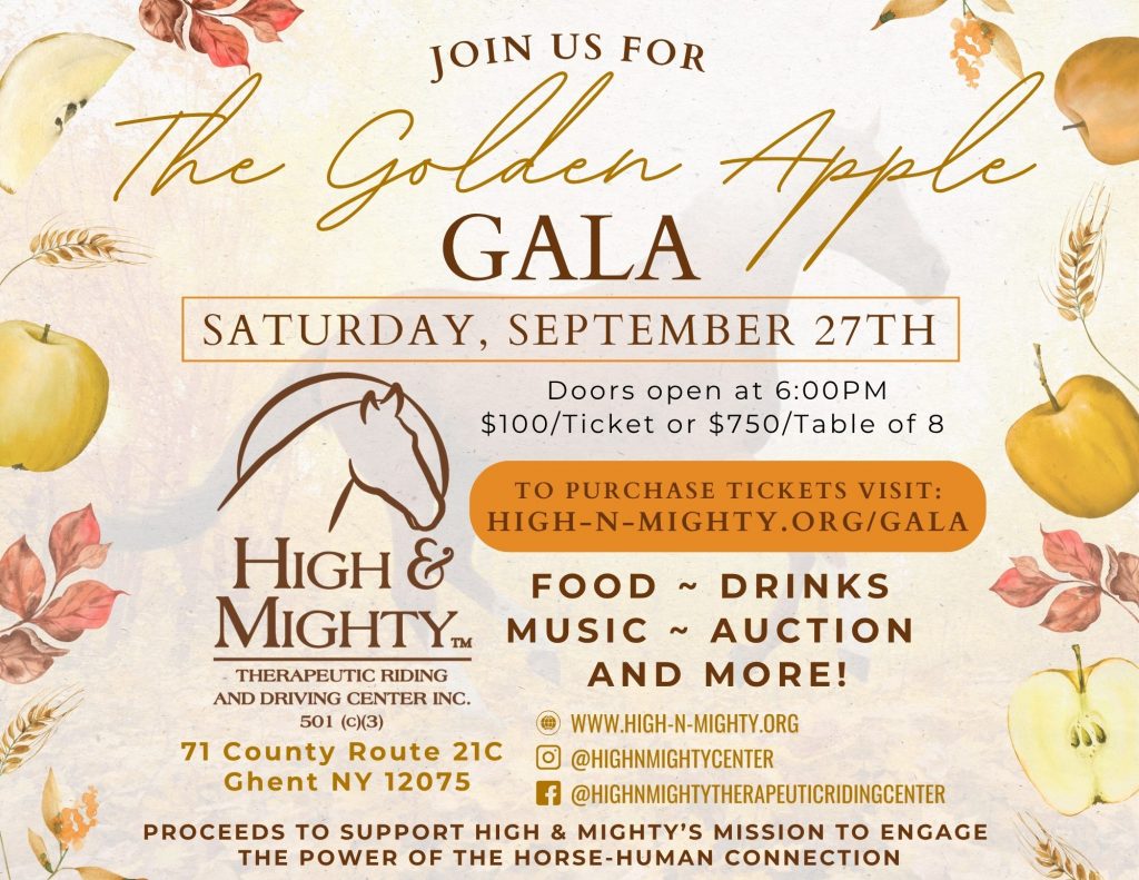Tickets may also be purchased by sending a check (Memo: Golden Apple Gala Tickets) to High & Mighty, 71 County Rt. 21C, Ghent, NY 12075 or visiting us in person.